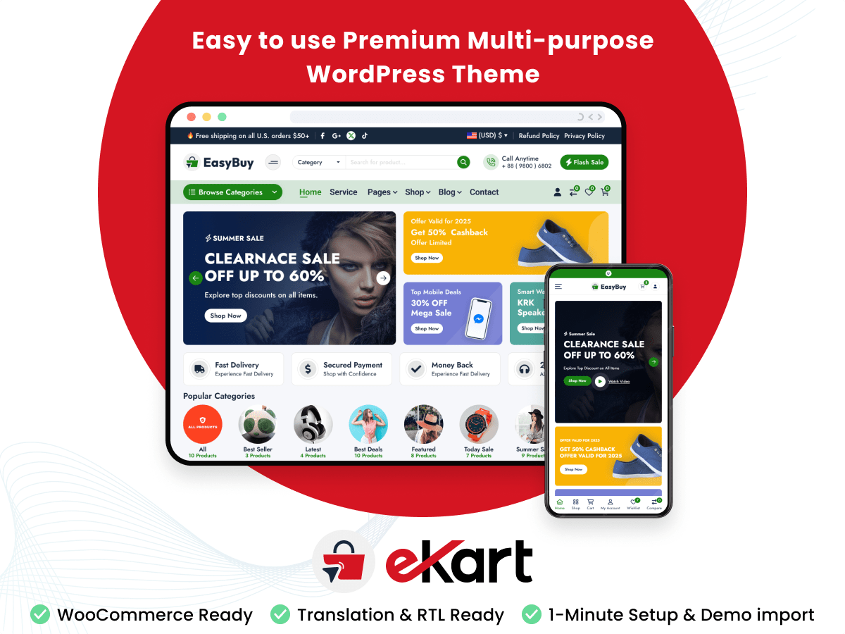 You do not need additional WooCommerce plugins to create amazing websites with eKart Pro. Using eKart Pro, you can create complete websites for your store.